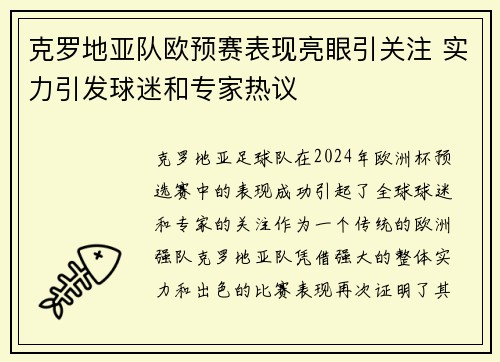 克罗地亚队欧预赛表现亮眼引关注 实力引发球迷和专家热议