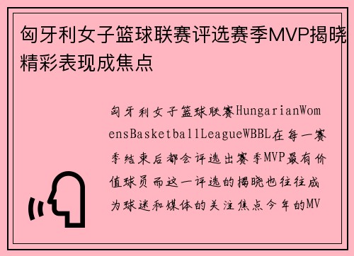 匈牙利女子篮球联赛(Hungarian Women's Basketball League, WBBL)在每一赛季结束后都会评选出赛季MVP(最有价值球员),而这一评选的揭晓也往往成为球迷和媒体的关注...